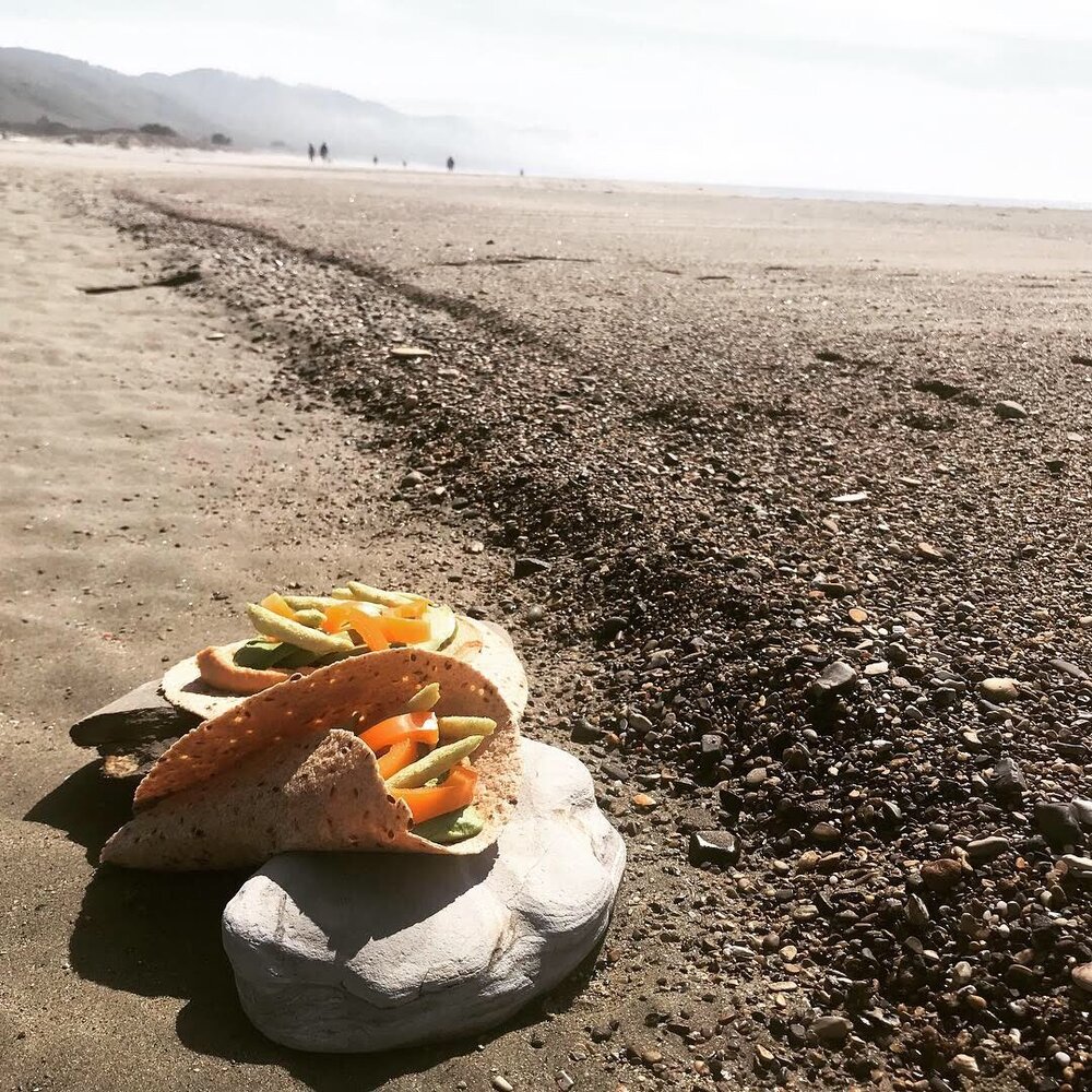 - ASSEMBLE hummus, avocado, veggies on tortilla