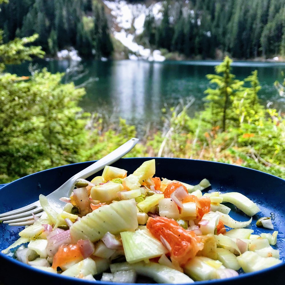 A slightly fancy and fresh no cook hiking lunch or side dish recipe.